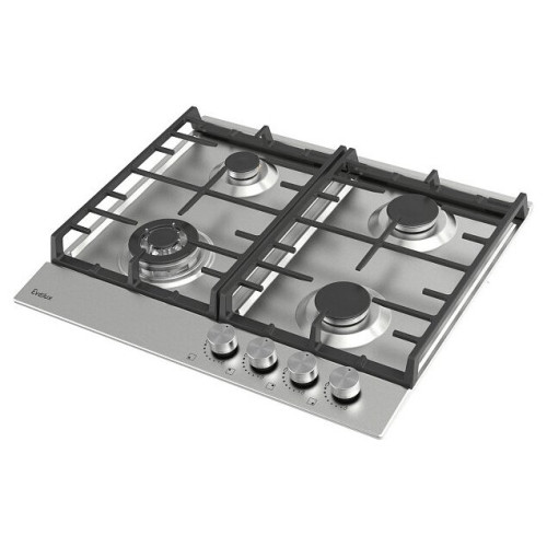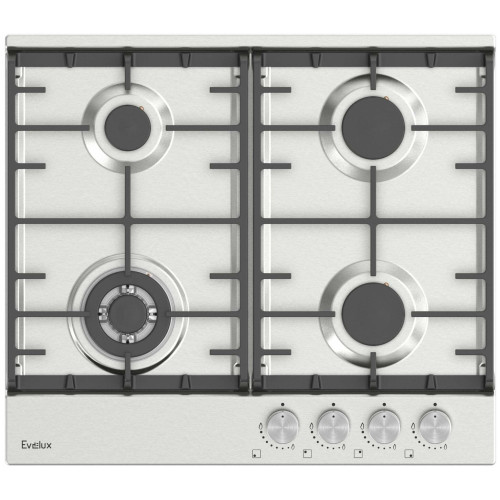 тип панели: газовая, количество конфорок: 4, материал панели: нержавеющая сталь, установка: независимая, переключатели: поворотные, ширина: 59 см, глубина: 51.50 см, специальные конфорки: Тройная корона, газ-контроль конфорок