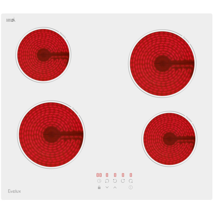 защитное отключение конфорок, индикатор остаточного тепла, кнопка блокировки панели