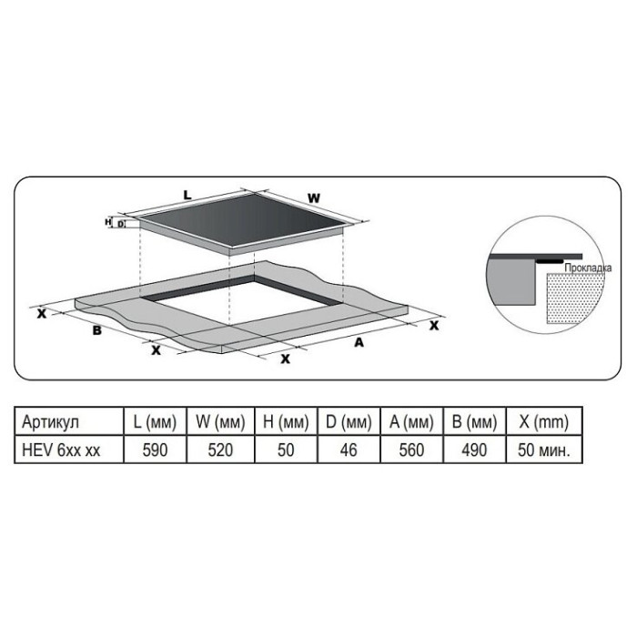 уровней мощности: 9; таймер: 1-99 мин; длина шнура питания: 1 м; масса: 7.65 кг; толщина рабочей поверхности не менее 30 мм