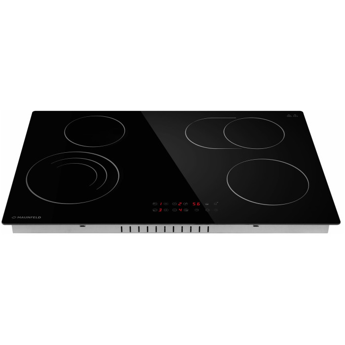 защитное отключение конфорок, кнопка блокировки панели, индикатор остаточного тепла
