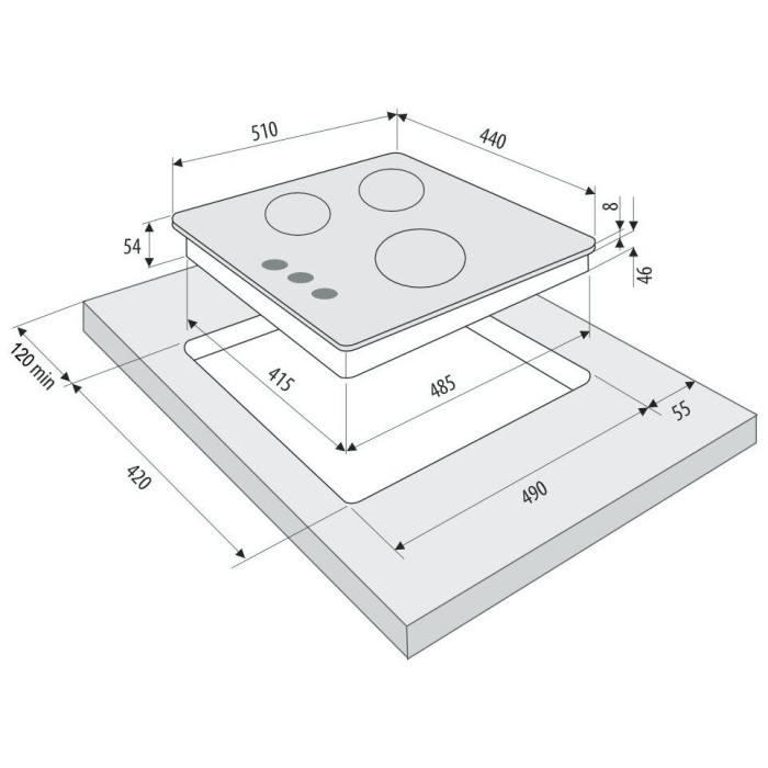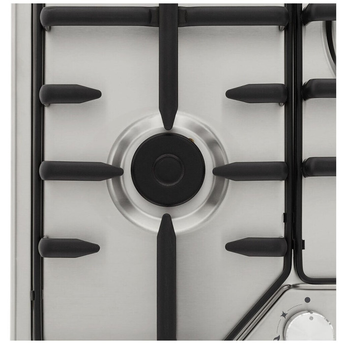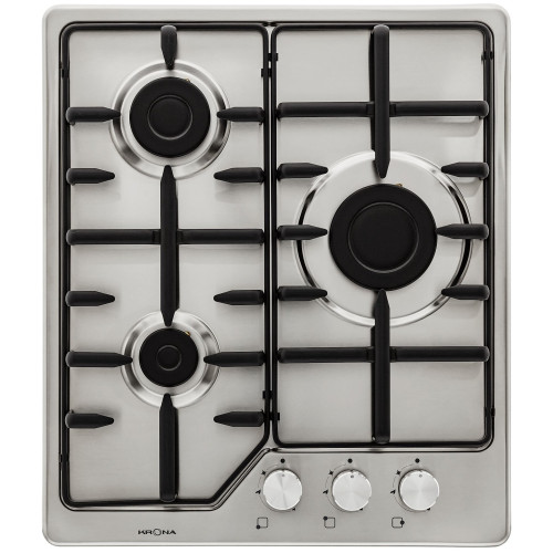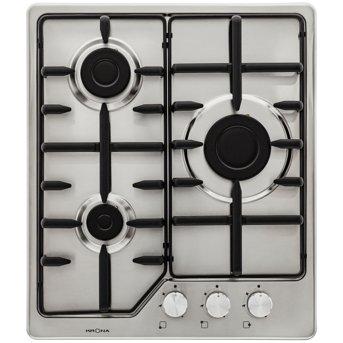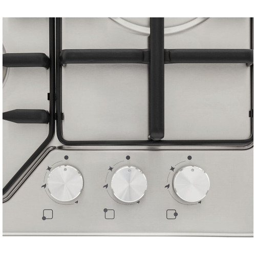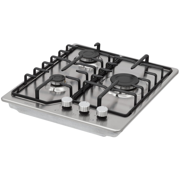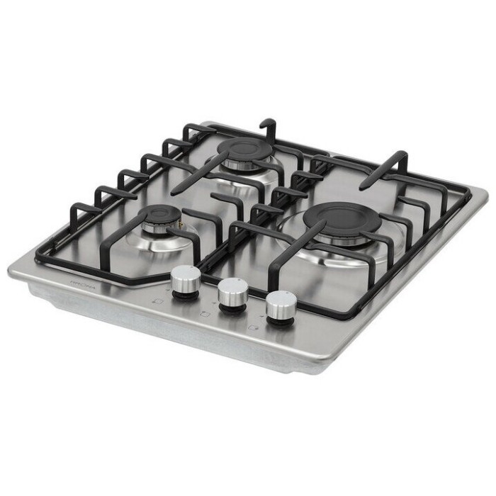 тип панели: газовая, количество конфорок: 3, материал панели: нержавеющая сталь, установка: независимая, переключатели: поворотные, ширина: 44 см, глубина: 51 см, газ-контроль конфорок, максимальная потребляемая мощность: 5.30 кВт