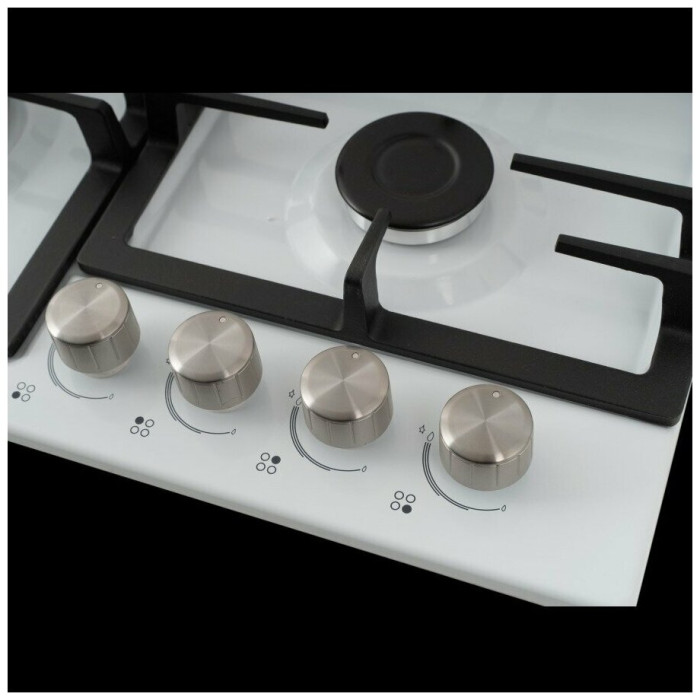 тип панели: газовая, количество конфорок: 4, материал панели: нержавеющая сталь, установка: независимая, переключатели: поворотные, ширина: 60 см, глубина: 51 см, специальные конфорки: Двойная корона, газ-контроль конфорок, максимальная потребляемая мощность: 7.80 кВт