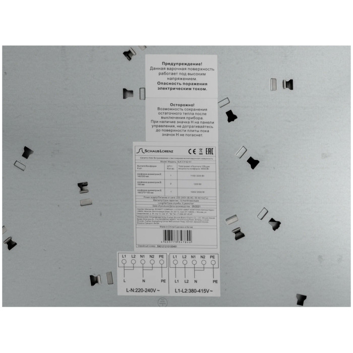 защитное отключение конфорок, индикатор остаточного тепла, кнопка блокировки панели