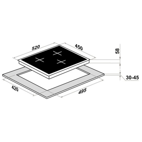 тип панели: индукционная, количество конфорок: 3, материал панели: стеклокерамика, установка: независимая, переключатели: сенсорные, ширина: 45 см, глубина: 52 см, специальные конфорки: индукционная, конфорок индукционных: 3, безопасность: защитное отключение конфорок, кнопка блокировки панели, индикатор остаточного тепла, функции: распознавание размера посуды, автоматика закипания, кратковременная пауза, таймер, распознавание наличия посуды, Booster, максимальная потребляемая мощность: 5.80 кВт