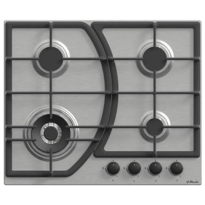 тип панели: газовая, количество конфорок: 4, материал панели: нержавеющая сталь, установка: независимая, переключатели: поворотные, ширина: 60 см, глубина: 50 см, специальные конфорки: Двойная корона, двухконтурная, газ-контроль конфорок, безопасность: защитное отключение конфорок, максимальная потребляемая мощность: 8.80 кВт