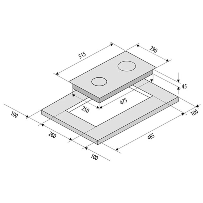 тип панели: газовая, количество конфорок: 2, материал панели: нержавеющая сталь, установка: независимая, переключатели: поворотные, ширина: 29 см, глубина: 57 см, газ-контроль конфорок