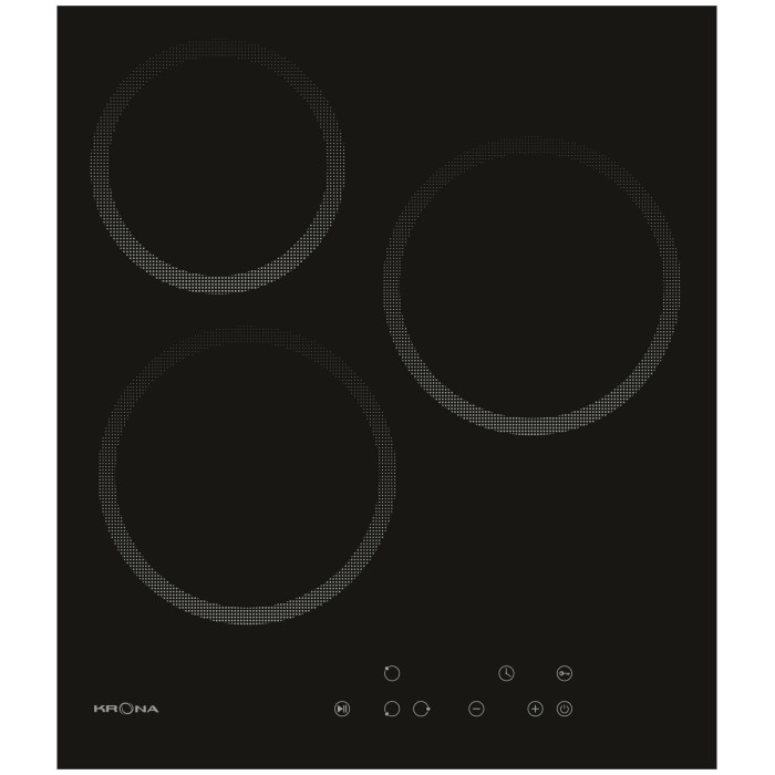 Электрическая варочная панель Krona Corso 45 BL может стать подходящим решением для тех, кто ищет компактное устройство для небольшой кухни, но не готов перейти на узкую поверхность типа «Домино». Ширина этой модели 45 см, что позволит сэкономить место и увеличить рабочую поверхность. Трёх конфорок, как правило, вполне достаточно для комфортного повседневного использования. Долго ждать НЕ придётся Зоны типа Hi-Light отличаются высокой эффективностью. Они быстро и равномерно прогреваются и доводят до кипения даже большую кастрюлю объёмом 5-7 л за считаные минуты. Электронное управление Сенсорная панель удобно расположена в передней части корпуса. Каждая конфорка оснащена цифровым дисплеем, отображающим выбранный вами уровень мощности. Есть таймер, который можно программировать двумя способами: на обратный отсчёт и на отключение (на срок до 99 минут). При необходимости доступ к настройкам легко заблокировать, что особенно пригодится семьям с маленькими детьми. Высокая надёжность Безопасность использования обеспечивают индикаторы остаточного тепла: они предупредят, что поверхность ещё не остыла. Если по какой-то причине вам потребуется на короткое время остановить приготовление, вы сможете нажать на специальную кнопку «Пауза-Старт». От перегрева прибор защищает система защитного автоматического отключения.