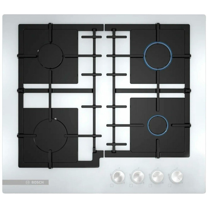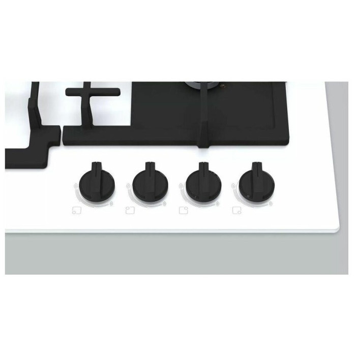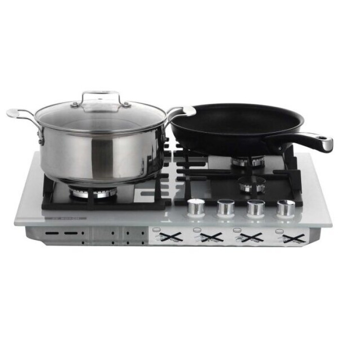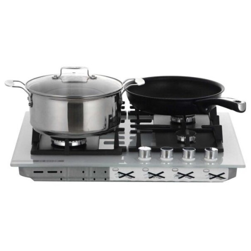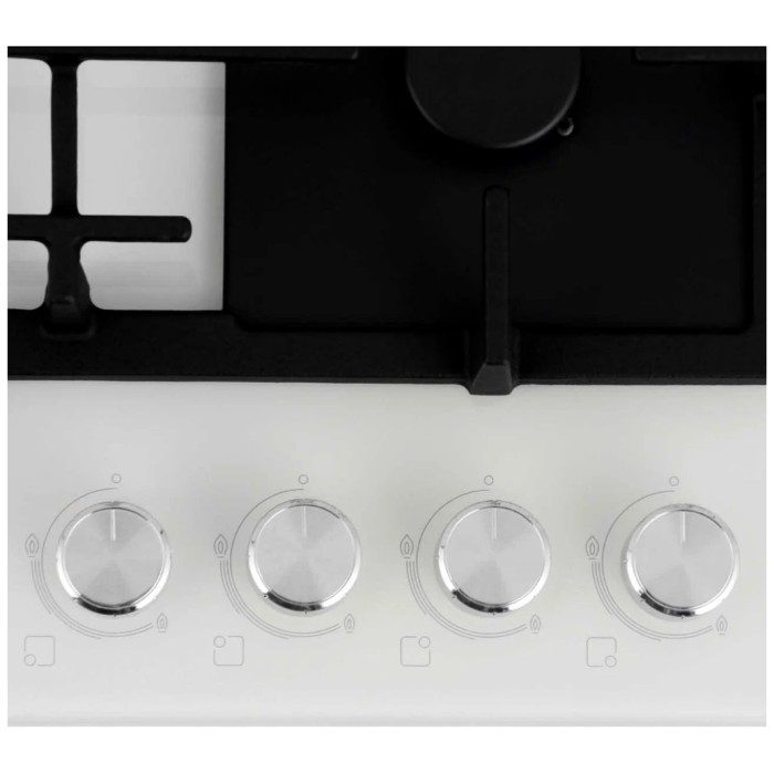 тип панели: газовая, количество конфорок: 4, материал панели: закаленное стекло, переключатели: поворотные, ширина: 59 см, газ-контроль конфорок, рамка