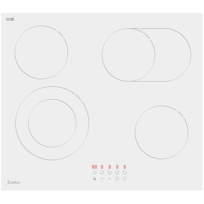 защитное отключение конфорок, индикатор остаточного тепла, кнопка блокировки панели
