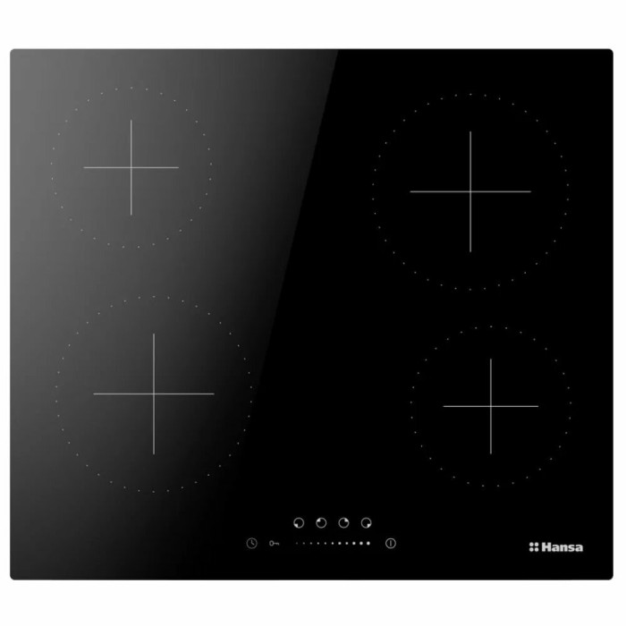 Встраиваемая варочная панель/ Стеклокерамическая варочная поверхность HANSA BHC633077, 4 конфорки 2x16,5cм, 2x20cм, сенсорная панель управления, слайдер, индикатор остаточного тепла, блокировка управления, таймер автоматического отключения, звуковой таймер, цвет - черный