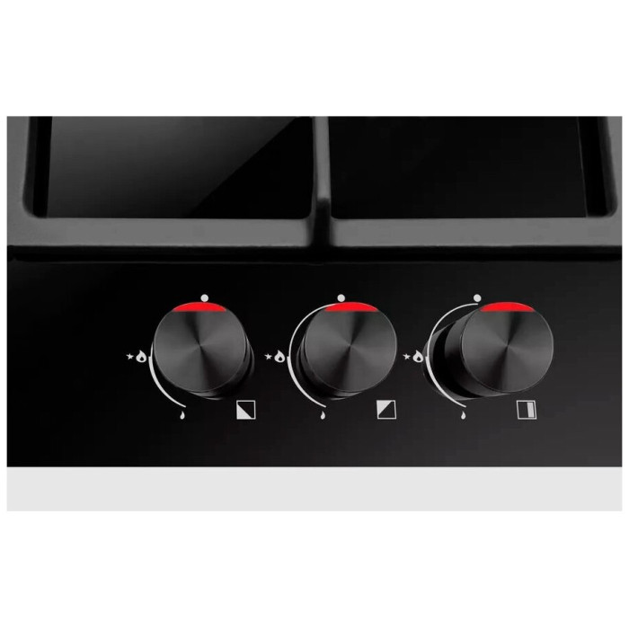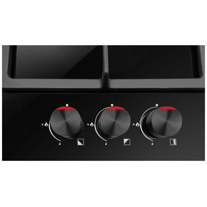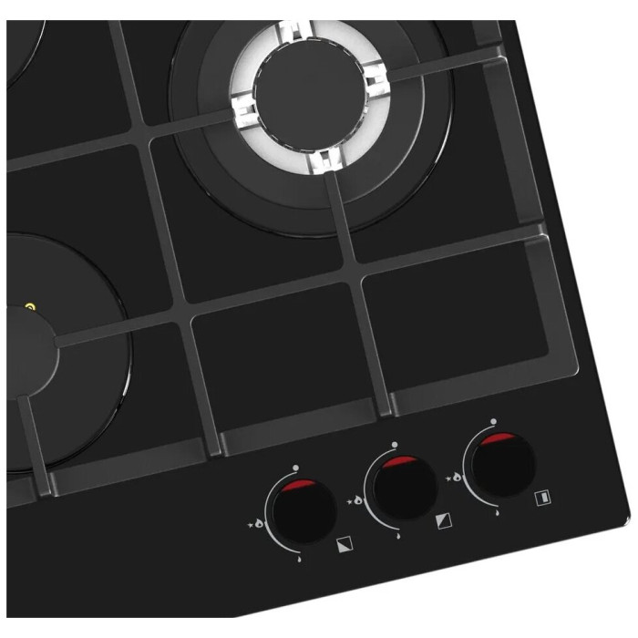 тип панели: газовая, количество конфорок: 4, материал панели: закаленное стекло, установка: независимая, переключатели: поворотные, ширина: 60 см, глубина: 52 см, специальные конфорки: Двойная корона, двухконтурная, безопасность: Газ-контроль