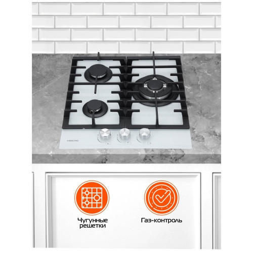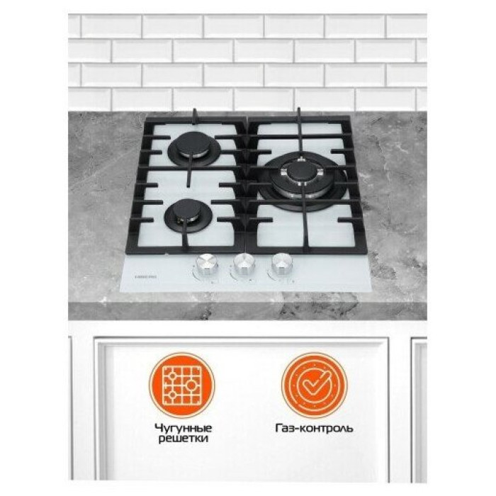 тип панели: газовая, количество конфорок: 3, материал панели: закаленное стекло, установка: независимая, ширина: 45 см, глубина: 51 см