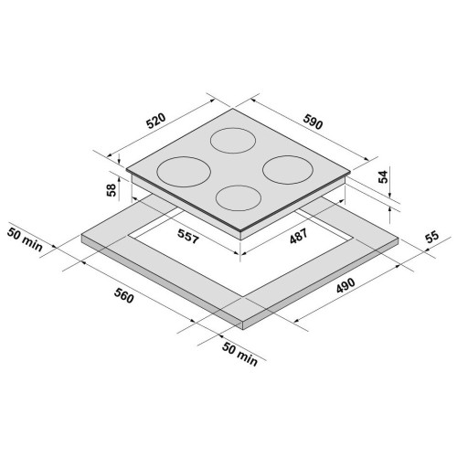 Диаметр и мощность конфорок: Дальняя левая: 160 мм * 1,2/1,5 кВт; Дальняя правая: 180 мм * 1,8/2,3 кВт; Ближняя левая: 210 мм * 1,8/2,3 кВт; Ближняя правая: 160 мм * 1,2/1,5 кВт
