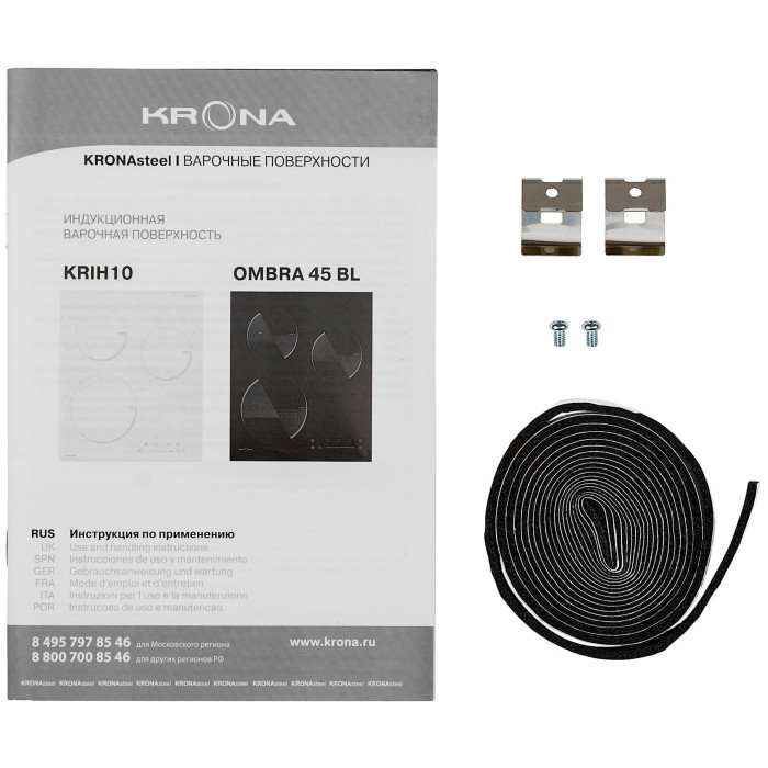 защитное отключение конфорок, индикатор остаточного тепла, кнопка блокировки панели