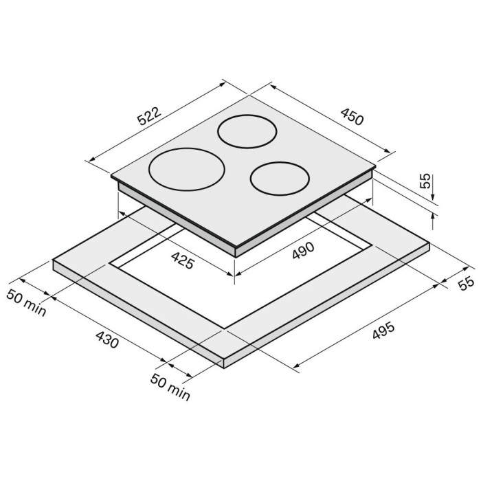 тип панели: индукционная, количество конфорок: 3, материал панели: стеклокерамика, установка: независимая, переключатели: сенсорные, ширина: 45 см, глубина: 52 см, специальные конфорки: индукционная, экспресс-конфорка, электроконфорка, конфорок индукционных: 3, безопасность: защитное отключение конфорок, индикатор остаточного тепла, кнопка блокировки панели, функции: Booster, кратковременная пауза, распознавание наличия посуды, распознавание размера посуды, таймер, максимальная потребляемая мощность: 4.90 кВт
