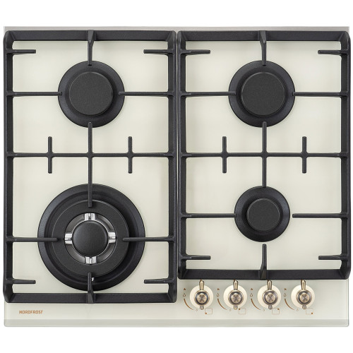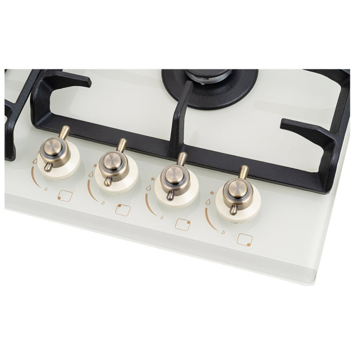 тип панели: газовая, количество конфорок: 4, материал панели: закаленное стекло, установка: независимая, переключатели: поворотные, ширина: 58 см, глубина: 50 см, специальные конфорки: Тройная корона, газ-контроль конфорок, максимальная потребляемая мощность: 8.60 кВт