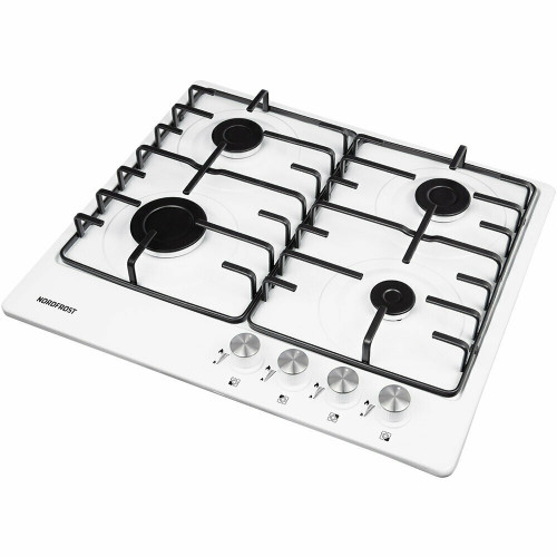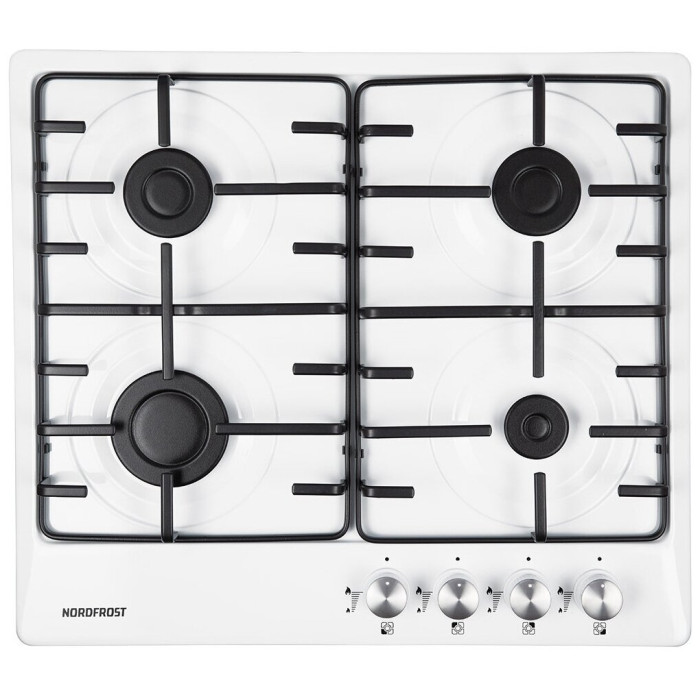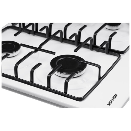 Встраиваемая газовая варочная поверхность NORDFROST HS 6040 выполнена из эмалированной стали, оснащена 4 газовыми итальянскими конфорками Sabaf разной мощности с электроподжигом от ручки регуляторов.