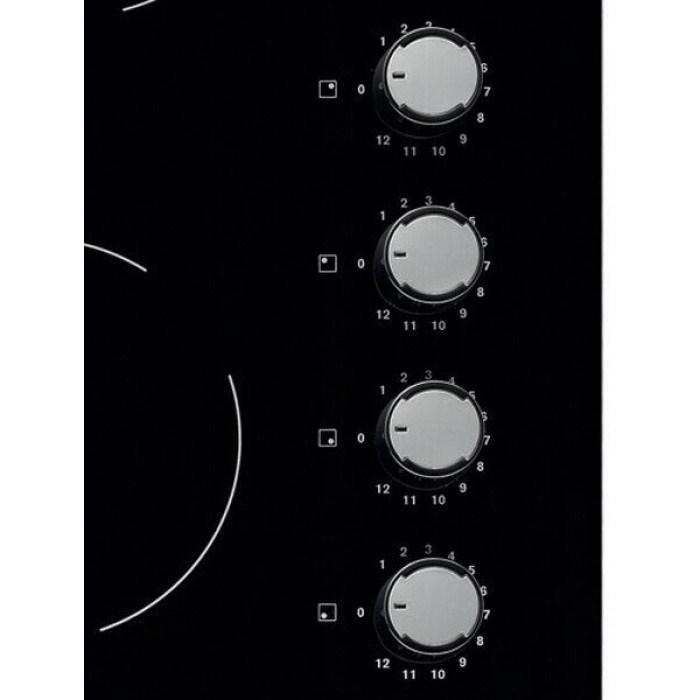 тип панели: электрическая, количество конфорок: 4, материал панели: стеклокерамика, установка: независимая, переключатели: поворотные, ширина: 59 см, глубина: 52 см, специальные конфорки: Hi Light, керамическая, безопасность: защитное отключение конфорок, индикатор остаточного тепла