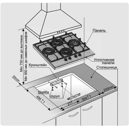тип панели: газовая, количество конфорок: 4, материал панели: закаленное стекло, установка: независимая, переключатели: поворотные, ширина: 67 см, глубина: 52.50 см, специальные конфорки: Двойная корона, газ-контроль конфорок
