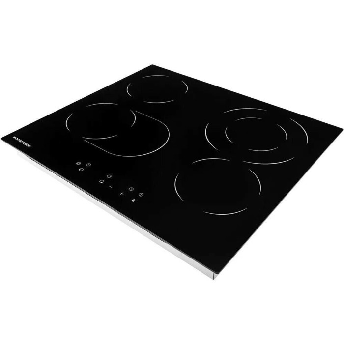 тип панели: электрическая, количество конфорок: 4, материал панели: стеклокерамика, установка: независимая, переключатели: сенсорные, ширина: 59 см, глубина: 52 см, безопасность: защитное отключение конфорок, индикатор остаточного тепла, кнопка блокировки панели, функции: поддержание тепла, максимальная потребляемая мощность: 6 кВт