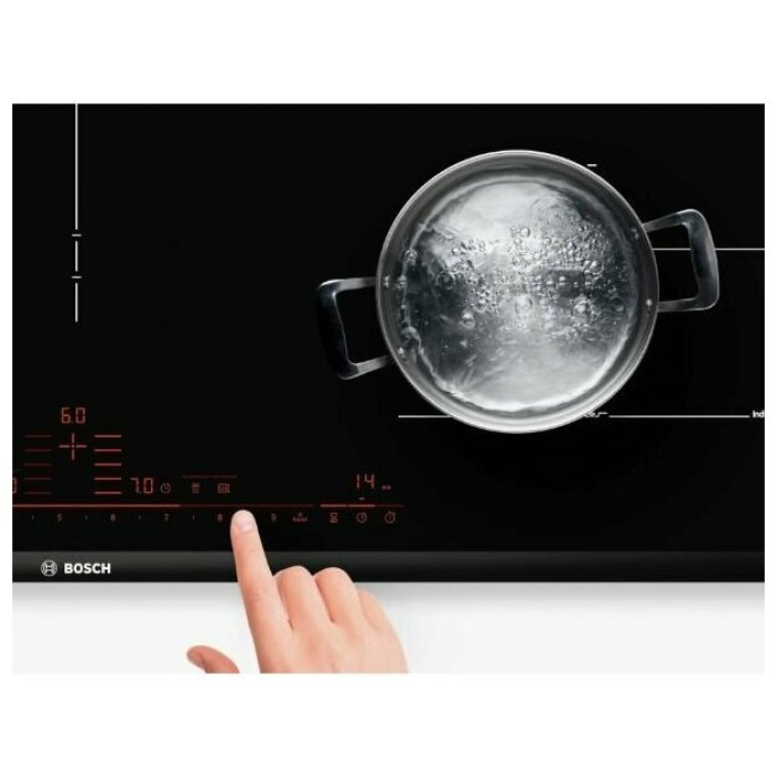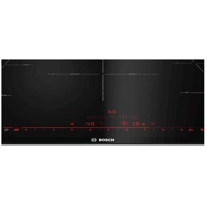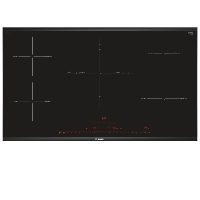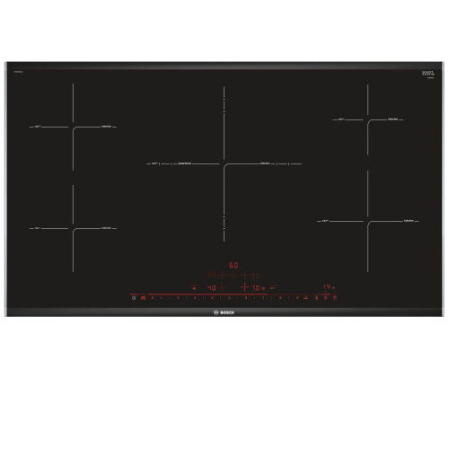 тип панели: индукционная, количество конфорок: 5, материал панели: стеклокерамика, установка: независимая, переключатели: сенсорные, ширина: 91.60 см, глубина: 52.70 см, специальные конфорки: индукционная, трехконтурная, конфорок индукционных: 4, безопасность: защитное отключение конфорок, индикатор остаточного тепла, рамка, функции: Booster, распознавание наличия посуды, таймер, Быстрый нагрев, максимальная потребляемая мощность: 11.10 кВт
