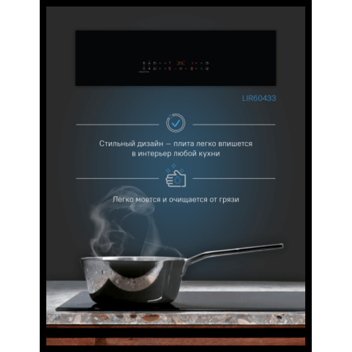 индикатор остаточного тепла, кнопка блокировки панели