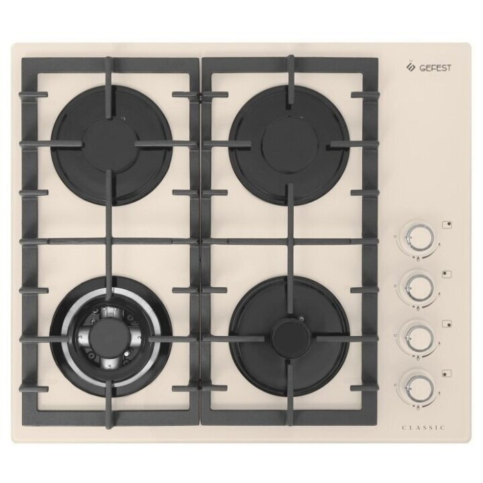 тип панели: газовая, количество конфорок: 4, материал панели: закаленное стекло, установка: независимая, переключатели: поворотные, ширина: 60 см, глубина: 10 см, специальные конфорки: Двойная корона, газ-контроль конфорок
