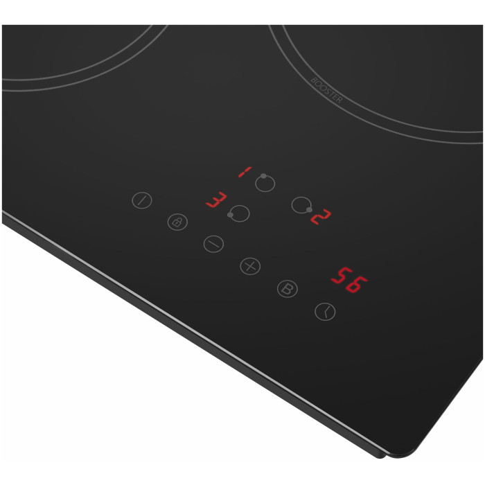 защитное отключение конфорок, индикатор остаточного тепла, кнопка блокировки панели