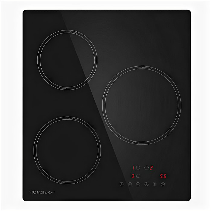 тип панели: индукционная, количество конфорок: 3, материал панели: стеклокерамика, установка: независимая, переключатели: сенсорные, ширина: 45 см, глубина: 51 см, безопасность: защитное отключение конфорок, индикатор остаточного тепла, кнопка блокировки панели