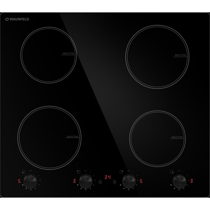 тип панели: индукционная, количество конфорок: 4, материал панели: стеклокерамика, установка: независимая, переключатели: поворотные, ширина: 60 см, глубина: 52 см, конфорок индукционных: 4, безопасность: защитное отключение конфорок, индикатор остаточного тепла, максимальная потребляемая мощность: 6.40 кВт