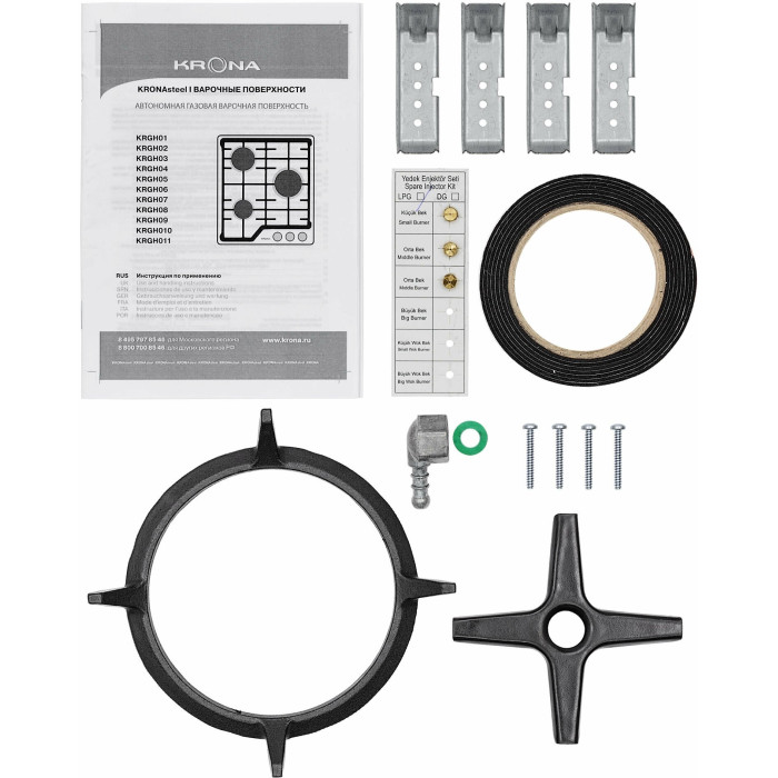 тип панели: газовая, количество конфорок: 3, установка: Стандартная, функции: Комплект для подключения газового баллона