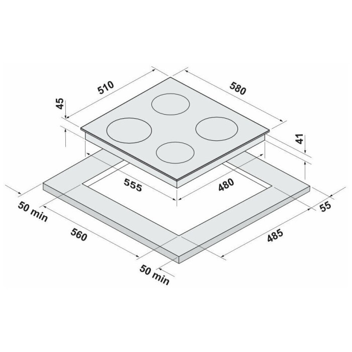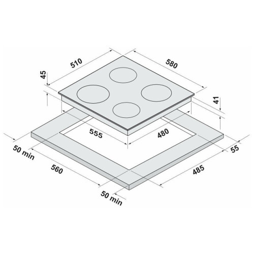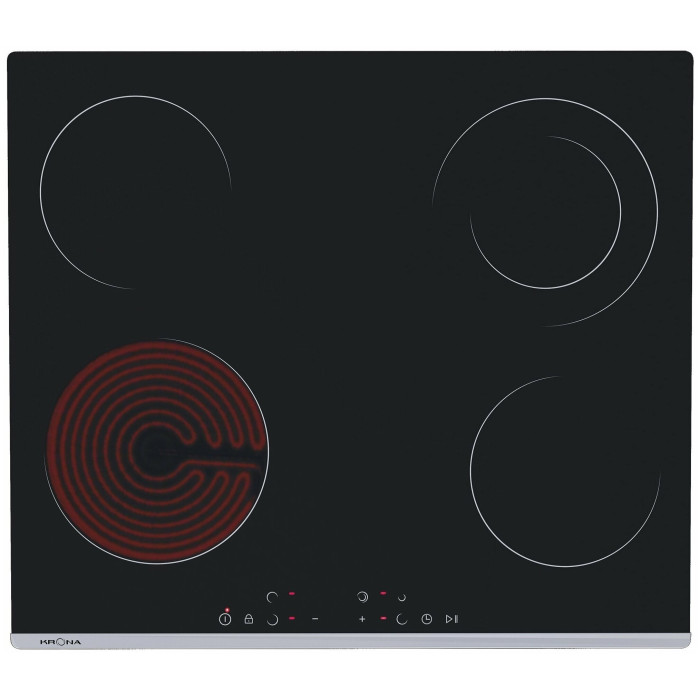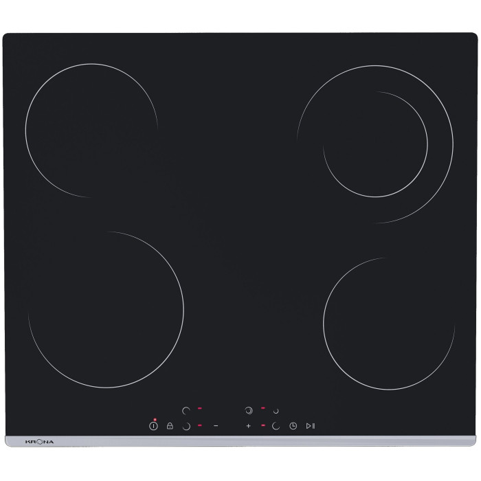 Мощность и диаметр конфорок: Дальняя левая: 145 мм * 1,2 кВт; Дальняя правая: 145/180 мм * 0,7/1,7 кВт; Ближняя левая: 180 мм * 1,8 кВт; Ближняя правая: 145 мм * 1,2 кВт