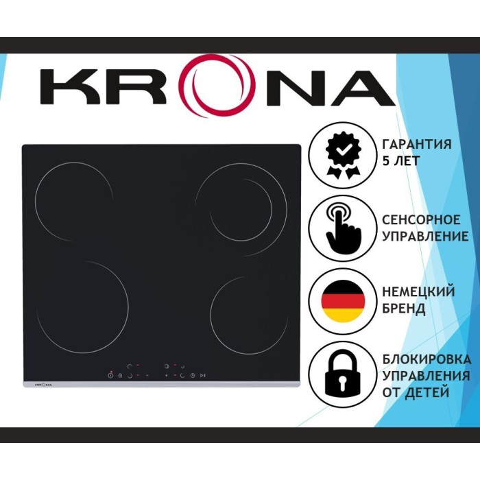 защитное отключение конфорок, индикатор остаточного тепла, кнопка блокировки панели