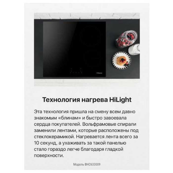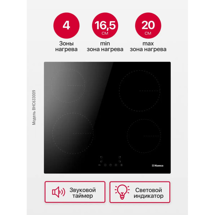 Варочная поверхность Hansa BHC633009 сделает комфортнее приготовление любимых блюд. Стеклокерамическая варочная поверхность с 4-мя конфорками HiLight быстро справится с любой задачей, будь то приготовление завтрака или праздничный ужин для всей семьи. Поверхность так же оснащена таймером и имеет сенсорное управление. Чтобы включить/выключить конфорку, изменить температуру, достаточно прикоснуться к кнопкам управления пальцем.