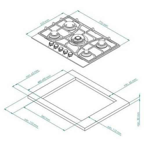 тип панели: газовая, количество конфорок: 5, материал панели: закаленное стекло, установка: независимая, переключатели: поворотные, ширина: 71 см, глубина: 51 см, специальные конфорки: Двойная корона, газ-контроль конфорок, максимальная потребляемая мощность: 11.70 кВт