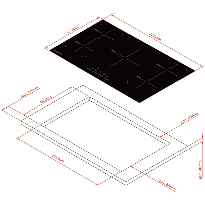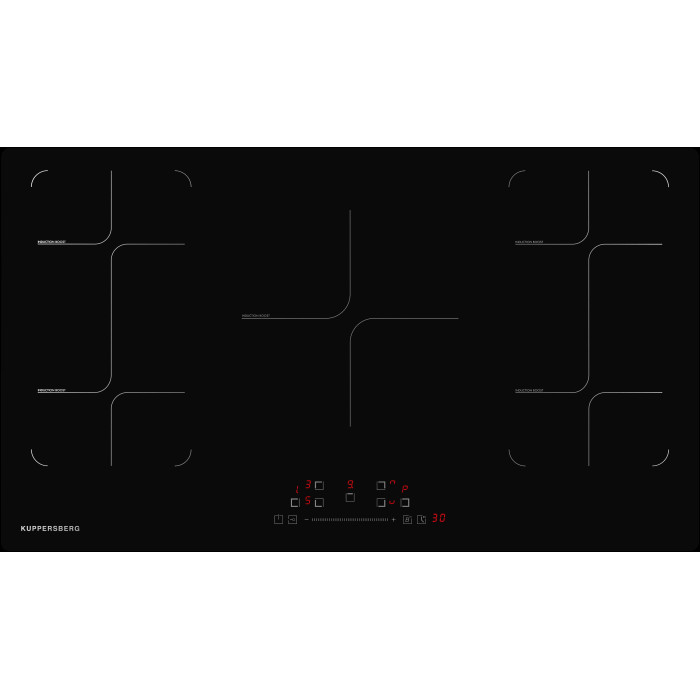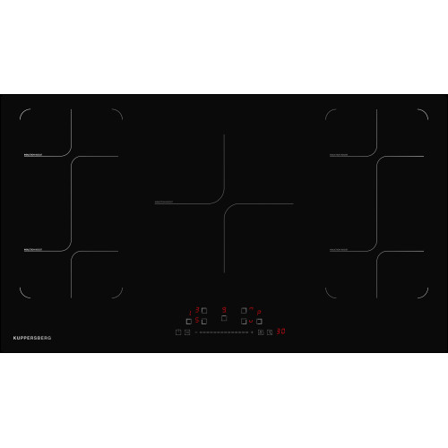 тип панели: индукционная, количество конфорок: 5, материал панели: стеклокерамика, установка: независимая, переключатели: сенсорные, ширина: 90 см, глубина: 52 см, конфорок индукционных: 5, безопасность: защитное отключение конфорок, индикатор остаточного тепла, кнопка блокировки панели, функции: Booster, автоматика закипания, кратковременная пауза, поддержание тепла, таймер, максимальная потребляемая мощность: 9 кВт