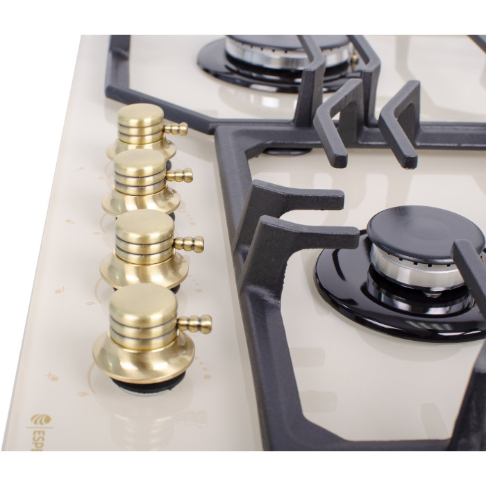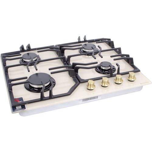 тип панели: газовая, количество конфорок: 4, материал панели: закаленное стекло, установка: независимая, ширина: 61 см, глубина: 51 см, газ-контроль конфорок, функции: Комплект для подключения газового баллона, максимальная потребляемая мощность: 5.90 кВт