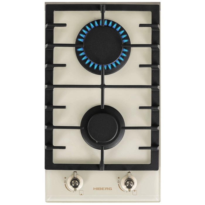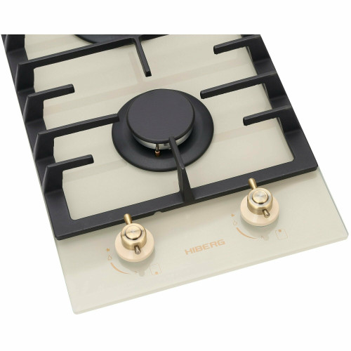 Газовая варочная поверхность HIBERG VM 3022 RY выполнена в стиле ретро из закаленного стекла в бежевом цвете, оснащена 2 газовыми конфорками с функциями: автоматический «электророзжиг» и «газ-контроль».