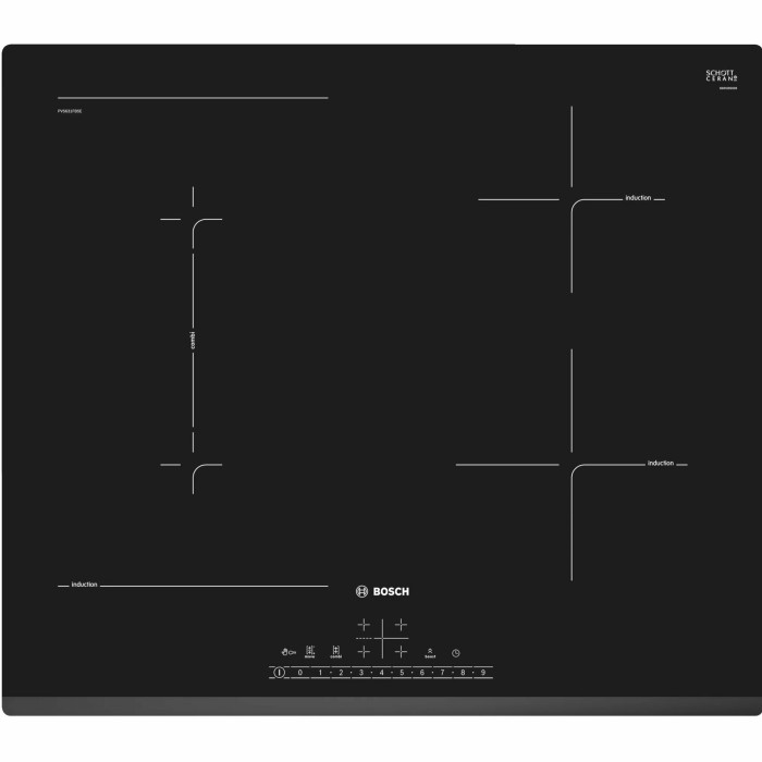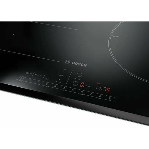 Описание: Индукционная варочная панель: быстрый нагрев и простота в обслуживании. Улучшенная функция PowerBoost варочных панелей Bosch повышает мощность нагрева для ускорения процесса нагрева и закипания. Например, можно вскипятить 2 литра воды почти в три раза быстрее, чем на ступени мощности "9" обычной конфорки. Просто включите конфорку и активируйте функцию PowerBoost. Перелив из кипящей кастрюли - обычное дело на кухне. В этом случае сработает автоотключение, а функция ReStart запомнит последние установки мощности. После того, как жидкость вытерли и нажали центральный выключатель, отобразятся последние сохраненные настройки, которые можно подтвердить в течение 10 секунд поле включения, и снова начать готовить. Управление TouchControl: одним прикосновением. Делает управление всеми конфорками и функциями удобным и простым. Достаточно легкого прикосновения к сенсорной клавише! Просто поставьте сковороду или кастрюлю на варочную поверхность и QuickStart определит положение посуды и сразу же активирует соответствующую комфорку. Вам останется только задать ступень мощности нагрева. Автоматическое определение посуды. Любая конфорка на индукционной варочной поверхности после включения отслеживает наличие посуды на ней. Если посуды нет или ее диаметр меньше размеров активации или посуда немагнитна конфорка отключится через 20 секунд. Таймер с функцией выключения: выключает заданную зону нагрева по истечению поставленного времени. Характеристики: Установка независимая Тип панели индукционная варочная поверхность Цвет черный Размеры для встраивания (ШхГ) 56 x 49 см Номинальная мощность 6.9 кВт Линейка Serie 6 Размеры (ШхГ) 59.20х52.20 см Количество конфорок 4 Материал панели стеклокерамика Индукционных конфорок 4 Таймер конфорок есть, звуковой с отключением Конфорок с овальной зоной нагрева 1 Размеры конфорок две конфорки диаметром 21 см - комбинированная зонаконфорка диаметром 18 смконфорка диаметром 14,5 см Минимальный диаметр конфорки 14.5 см Максимальный диаметр конфорки 21 см Технические характеристики Мощность 6.9 кВт Панель управления Расположение панели спереди Переключатели сенсорные Тип сенсорного управления слайдерное Кнопка блокировки панели есть Автоматические функции распознавание наличия посуды Индикатор остаточного тепла есть Защитное отключение есть Газ-контроль конфорок нет Гарантийный срок 365 дн. Функциональность, управление Таймер есть