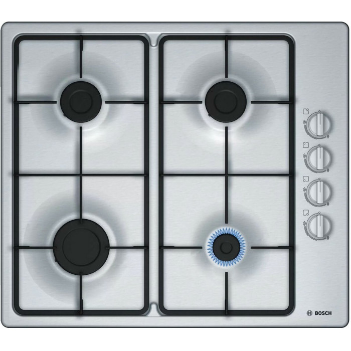 Тип панели: газовая; Установка: независимая; Материал панели: нержавеющая сталь; Расположение панели управления: сбоку; Переключатели: поворотные; Рамка: нет; Общее количество конфорок: 4; Электроподжиг: есть;