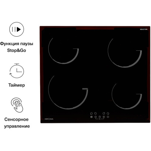 Индукционная варочная панель VENTO 60 выполнена в современном дизайне из черной стеклокерамики. Модель станет настоящей находкой для ценителей безопасности и функциональности, благодаря автоматическому отключению, защите от перегрева и перелива, возможности блокировки управления, а также функции усиления мощности нагрева Booster.