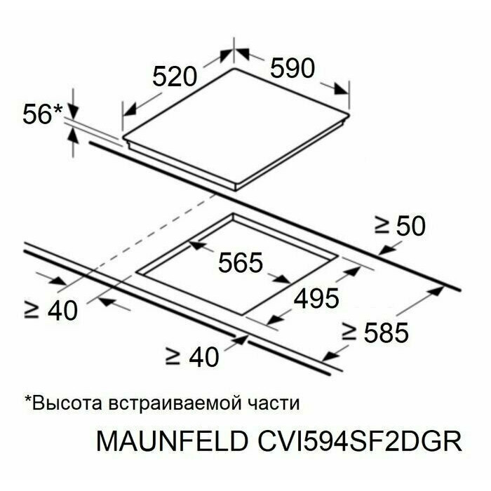Представляем вашему вниманию индукционную варочную панель Maunfeld CVI594SF2LGR с двумя Flex Zone и функцией Booster! Эта варочная панель станет идеальным выбором для тех, кто ищет функциональность, комфорт и экономичность. Основные характеристики: - Установка - независимая; - Тип панели - индукционная; - Ширина - 59 см; - Глубина - 50 см; - Количество конфорок - 4; - Конфорки - индукционные; - Поверхность-гриль - да; - Максимальная потребляемая мощность - 7,2 кВт; - Необычные конфорки - нет; - Минимальный диаметр конфорки - 19 см; - Максимальный диаметр конфорки - 38 см; - Размеры конфорок - 4х19 см. Панель управления имеет сенсорное слайдерное управление и расположена спереди. Она оснащена специальными конфорками, индикатором остаточного тепла, кнопкой блокировки панели, таймером и функцией кратковременной паузы. Преимущества этой варочной панели: - Безопасность - защитное отключение, индикация остаточного тепла и блокировка панели обеспечивают максимальную защиту от случайного изменения настроек. - Удобство - 4 слайдера позволяют быстро настроить температуру и мощность конфорок. - Технология непрерывного нагрева, Новое поколение индукционных варочных поверхностей, основанных на технологии непрерывного нагрева. Такие приборы обеспечивают постоянную температуру в ходе всего процесса приготовления блюд. Например вам нужно, чтобы температура постоянно держалась на отметке 95 градусов, а не в диапазоне случайных колебаний 85, 90 или 100 градусов. Таким образом, эффективность и равномерность приготовления блюд повышается в разы. - Экономия - индукционные конфорки потребляют меньше электроэнергии, чем обычные плиты. - Функциональность - таймер, функция паузы и поддержания тепла дают возможность контролировать процесс приготовления. - Стильный дизайн - серая стеклокерамическая панель без рамки подойдет для любого современного интерьера. - Две Flex Zone - две зоны с расширением позволяют готовить большие порции и экономят место. - Технология непрерывного нагрева - быстрое разогревание пищи и экономия времени. - Индикатор остаточного тепла - показывает, какие конфорки еще горячие после выключения. - Кнопка блокировки панели - предотвращает случайные изменения настроек. Индукционная варочная панель Maunfeld станет отличным выбором для всех, кто ценит удобство, функциональность и экономию.