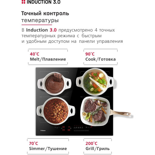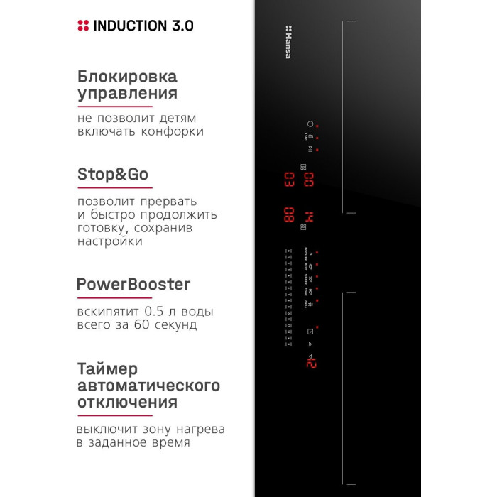 Функция поддержания тепла; Объединение зон нагрева (Мост)
