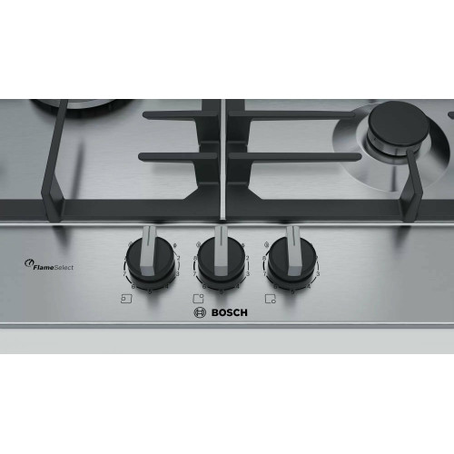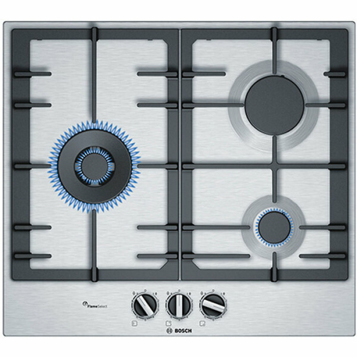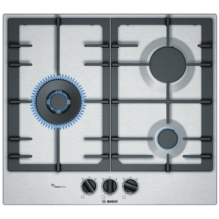 В47хШ582xГ520мм. 3-х конфорочная, Нержавейка, чугунные решетки, электроподжиг, газ-контроль, расположение конфорок классическое, управление механическое, 9 ступеней регулировки пламени FlameSelect. WOK-конфорка. Термоэлектрическая защита от утечки газа oost. FlameSelect с 9-уровнями пламени Составная чугунная решетка Поворотные переключатели Функция FlameSelect: для точной регулировки пламени на 9 разных ступенях. Конфорка WOK мощностью до 4кВт. Составная чугунная решетка: для высокой прочности и устойчивости посуды. Поворотные переключатели: для эргономичного контроля. Цвет поверхности: элегантный дизайн нержавеющей стали.