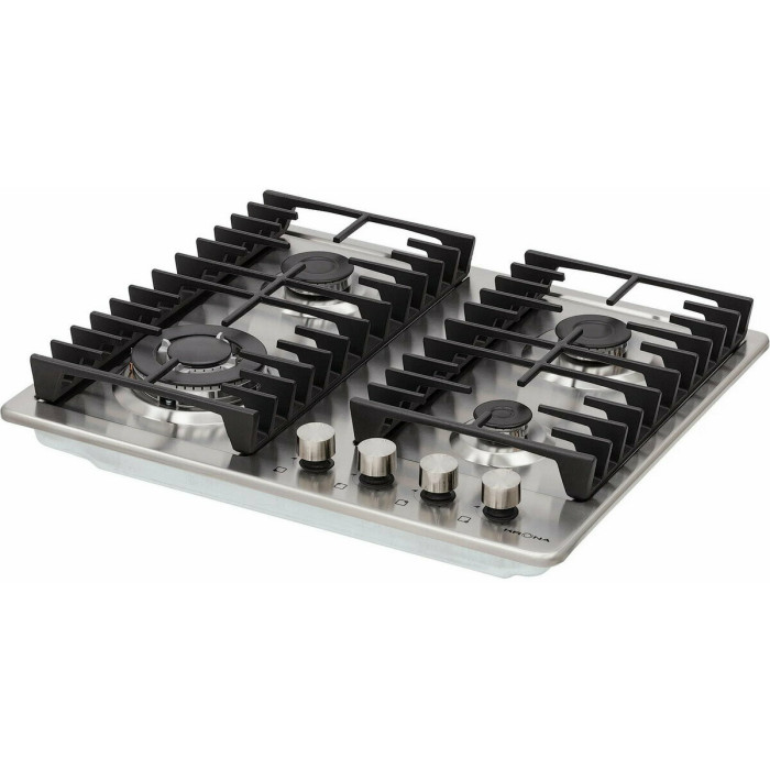 Тип панели: газовая; Установка: независимая; Материал панели: нержавеющая сталь; Расположение панели управления: спереди; Переключатели: поворотные; Рамка: нет; Общее количество конфорок: 4; Конфорок газовых: 4;