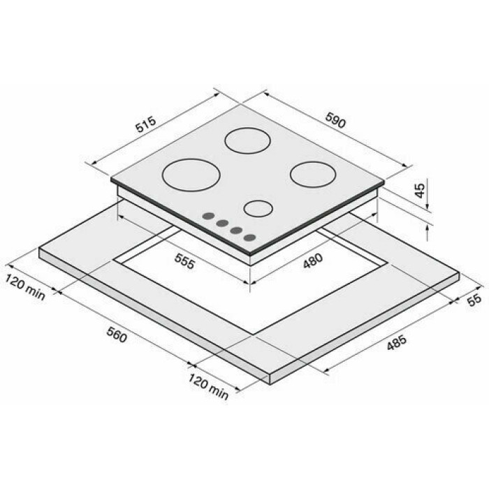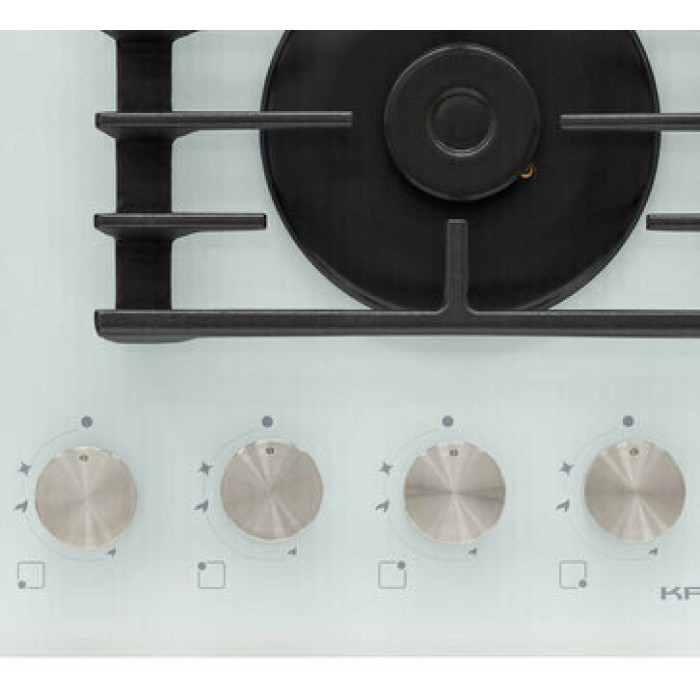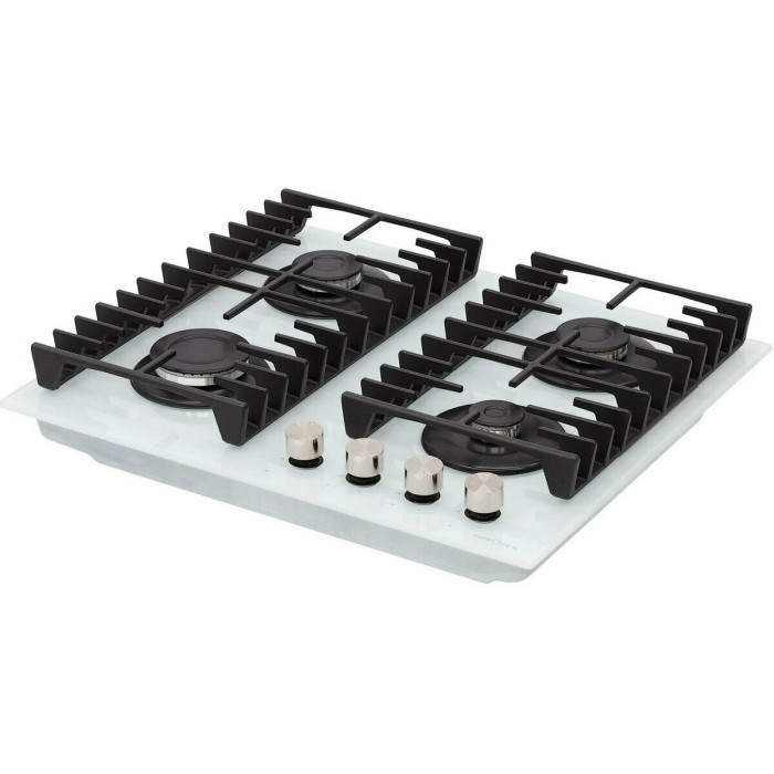 Тип панели: газовая; Установка: независимая; Материал панели: закаленное стекло; Расположение панели управления: спереди; Переключатели: поворотные; Рамка: нет; Общее количество конфорок: 4; Конфорок газовых: 4;
