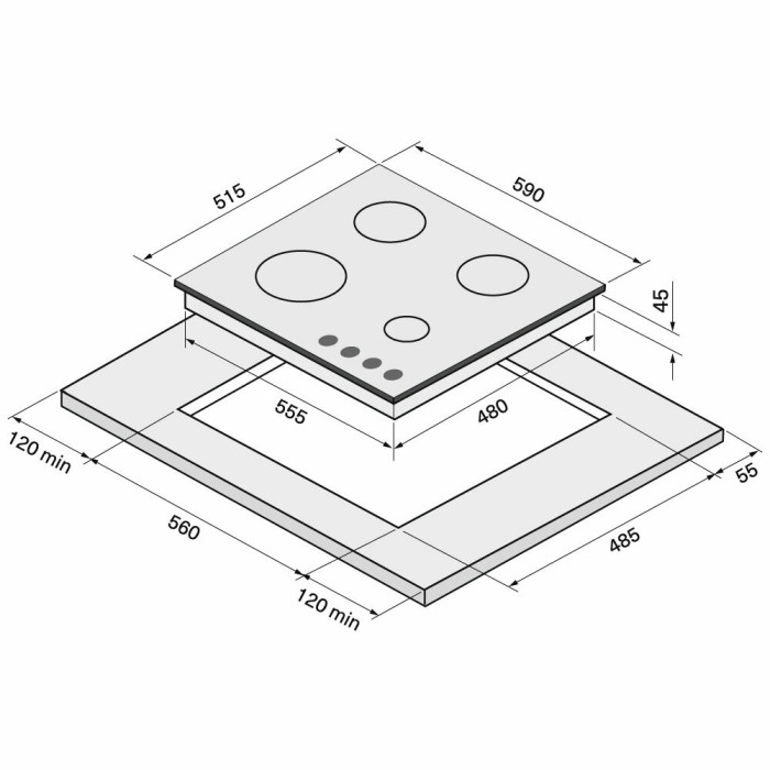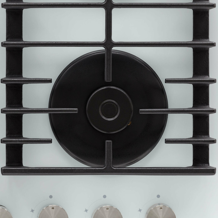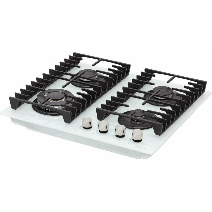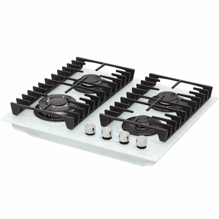 Тип панели: газовая; Установка: независимая; Материал панели: закаленное стекло; Расположение панели управления: спереди; Переключатели: поворотные; Рамка: нет; Общее количество конфорок: 4; Конфорок газовых: 4;