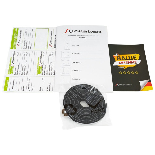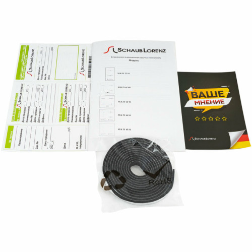 уплотнительная лента для монтажа, крепления и болты для столешницы, кабель питания, инструкция, руководство по подключению, гарантийный талон.
