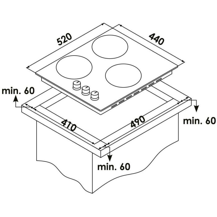 1 х диаметром Ø, 165 мм; 1200 Вт;2 х диаметром Ø, 120/200 мм; 1000/2000 Вт;