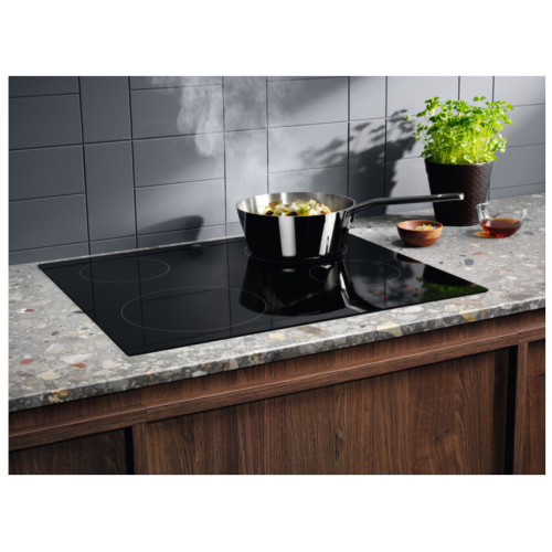 Материал панели стеклокерамика, с рамкой, количество конфорок 4, установка независимая, функции Booster, распознавание наличия посуды, распознавание размера посуды, таймер, переключатели сенсорные